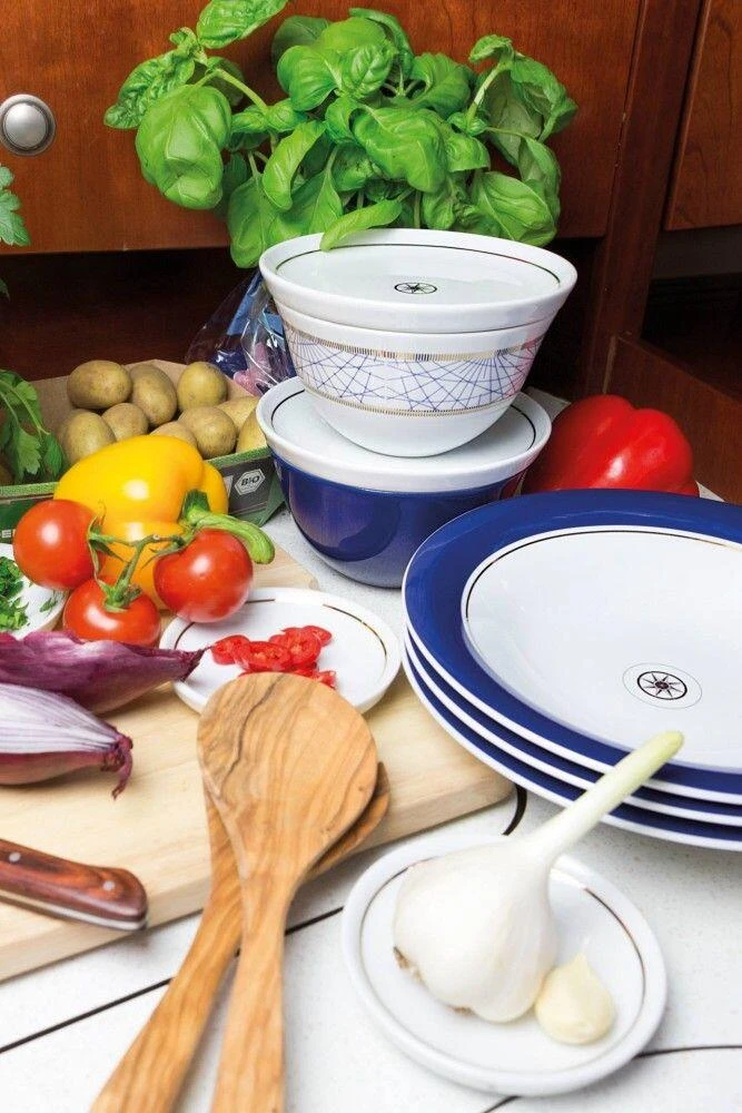 Mit der Geschirrserie „On Tour“ präsentiert Kahla das erste, spezielle Porzellan für die Nutzung auf See. Die multifunktionalen Geschirrteile decken sämtliche wichtige Einsatzmöglichkeiten ab und basieren auf dem Designklassiker Update. Dank der Magic Grip Oberfläche stehen die Teller, Tassen und Schalen sicher an Bord und verliehen dem Geschirr auch bei Wellengang sicheren Halt.