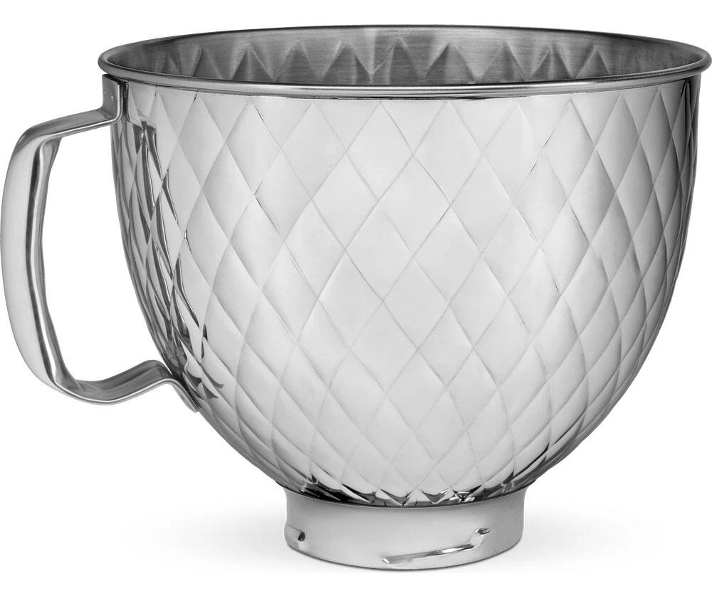 KitchenAid Edelstahlschüssel gesteppt 4,8 l. Für die KitchenAid 4,3 L und 4,8 L Küchenmaschinen mit kippbarem Motorkopf. Der Retro-Look mit dem gesteppten Edelstahl verleiht Ihrer Küche Eleganz und Klasse.