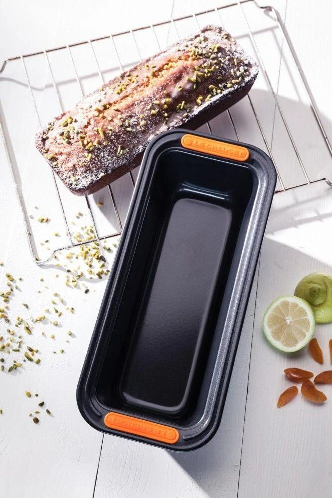 Dank der Antihaftbeschichtung lassen sich die Backwerke leicht von der Le Creuset Kastenform lösen. Der breite Rand mit Silikoneinsatz sorgt zusätzlich für einen sicheren Tragekomfort.