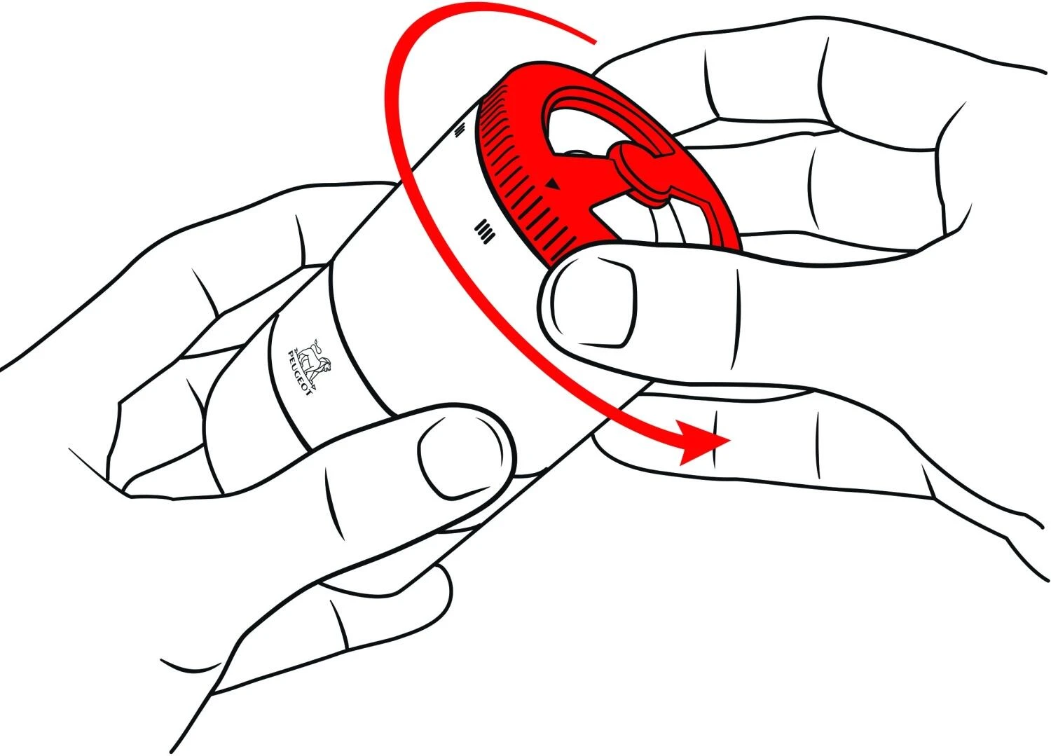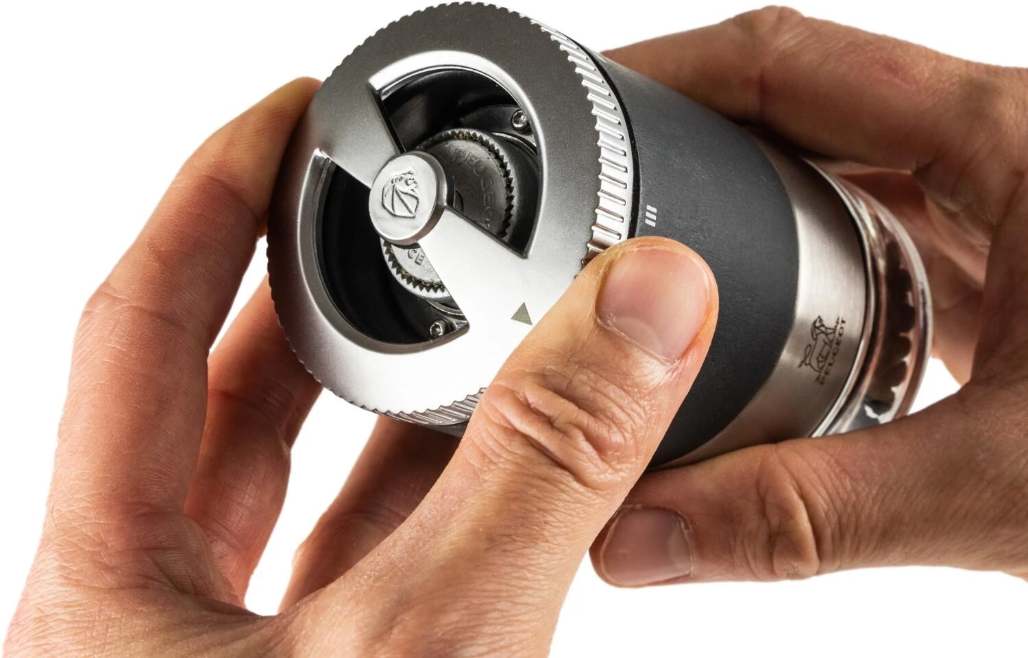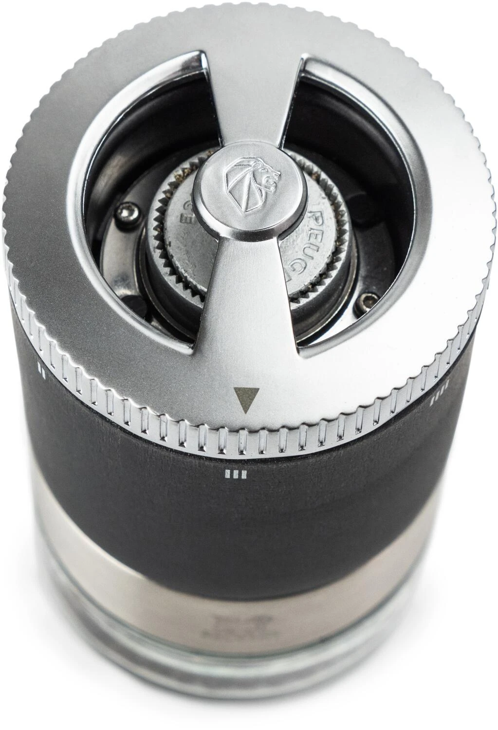 Die Zähne des Pfeffermahlwerkes von PEUGEOT werden mit einem Werkzeugstahl herausgearbeitet, daher die unübertreffliche Schärfe der PEUGEOT Pfeffermühlen. Es schneidet Pfefferkörner statt sie zu zerquetschen und setzt so die feinen Aromen, die die Pfefferkörner in sich bergen, schonend frei. Die gegenläufig, trichterförmig angeordneten Zähne ziehen den Pfeffer nach unten und mahlen, je nach Bedarf, fein oder grob. Dank patentierter u’Select Technik ist eine Mahlgradeinstellungen möglich, wodurch die Gewürze schonend gemahlen werden können. Je fester angezogen wird, umso feiner ist das Mahlgut. Der Stahl des PEUGEOT Mahlwerks ist gegen Korrosion behandelt. Dies erhält die Schneidfähigkeit und garantiert eine lange Haltbarkeit der PEUGEOT Mühlen.