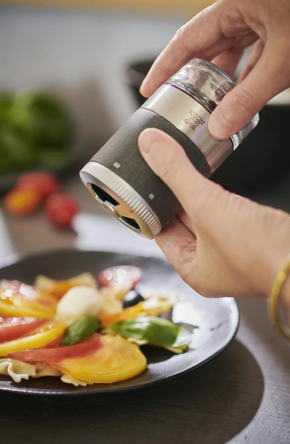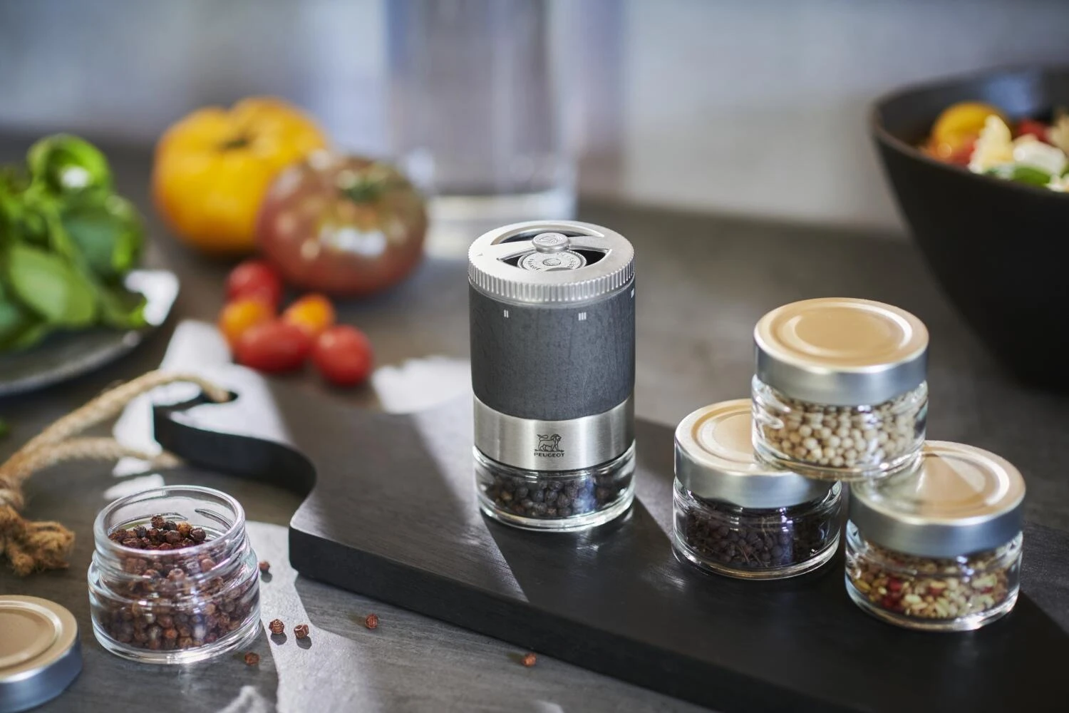 Es gibt so viele unterschiedliche Pfeffernuancen – wieso also nur eine Mahlen? Mit der Pfeffermühle Maestro u’Select graphit von Peugeot würzen Sie Ihre Lieblingsspeisen auf eine ganz individuelle Art und Weise. Dank des austauschbaren Pfefferbehälters aus Glas können verschiedene Pfefferkörner ab- und wieder angeschraubt werden. Ein Wechsel der verschiedenen Körner ist somit spielend leicht.
